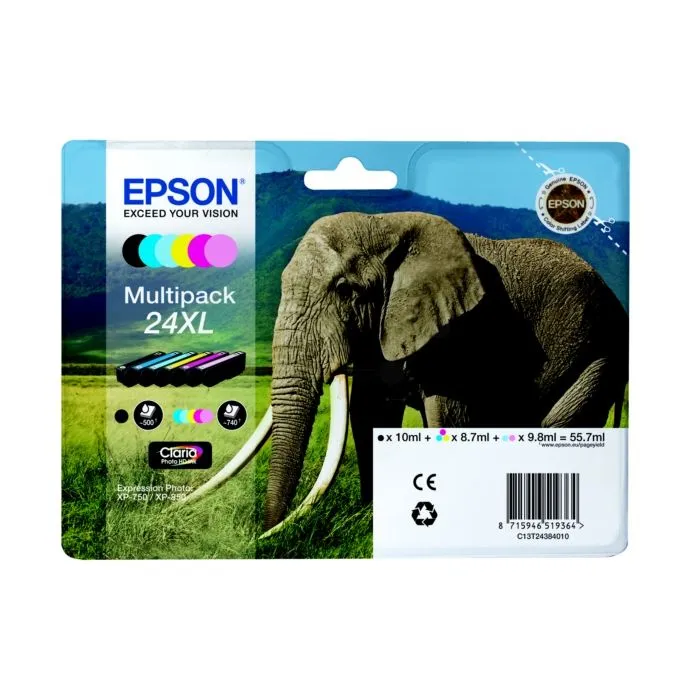 Les cartouches Epson C13T24384011 / 24XL (multipack 6 couleurs : noire, cyan, magenta, jaune, cyan clair, magenta clair) offrent un excellent compromis entre qualité d’impression et fiabilité, idéales pour les besoins professionnels.